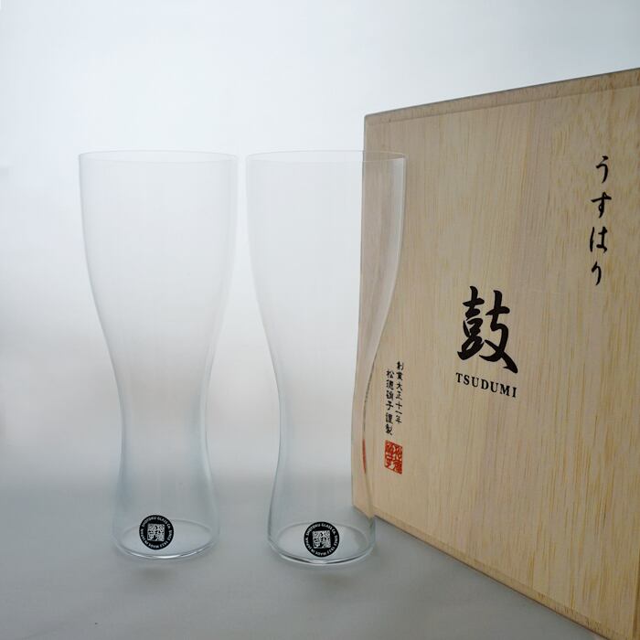うすはり 鼓 木箱入 2P【ビールグラス】【ビヤグラス】【酒】
